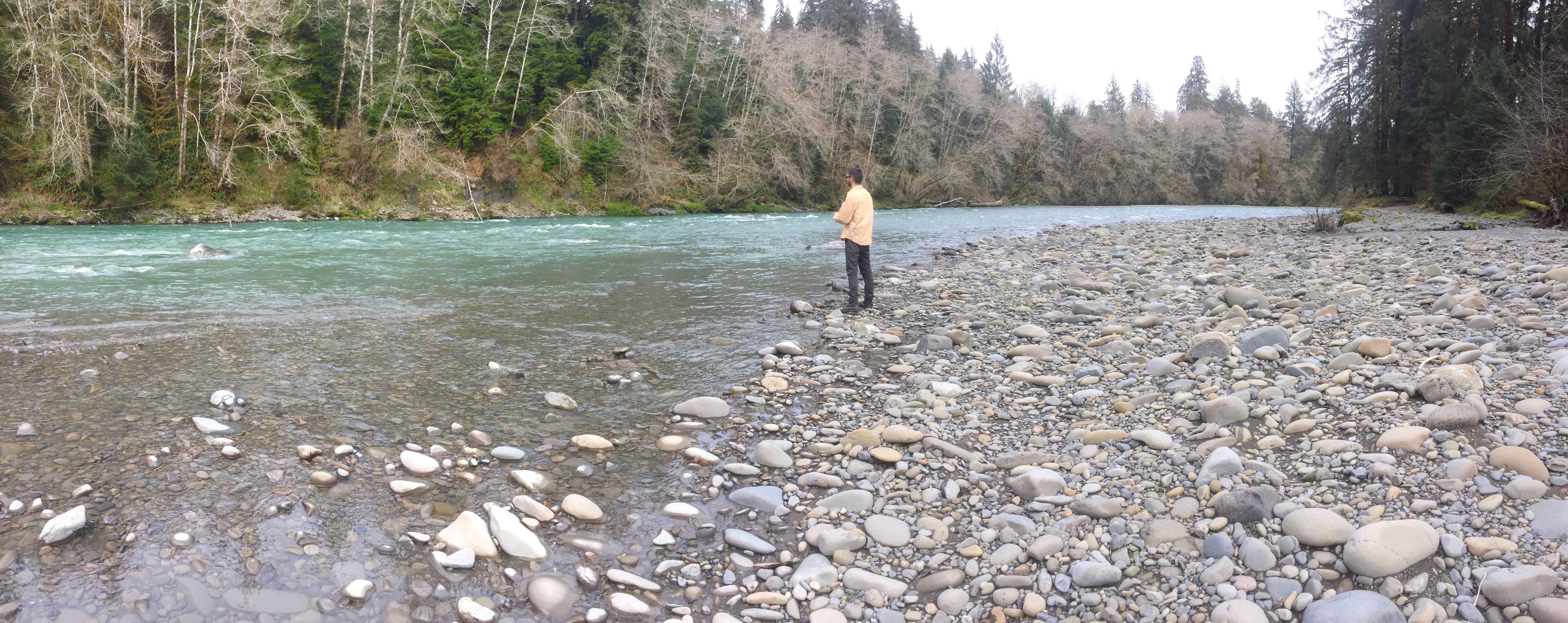 So we did what we do; we took the road that was open. Out of the park and into the National Forest, deeper north and east into the rain forest. Eventually, we were able to find a camp up the Queets River. We will sleep about 12 feet from the Queets River, in fact. It is a peaceful and nearly vacant camp, so we set up and head out to fish. An afternoon spent fly-fishing in a beautiful river is an afternoon well spent.