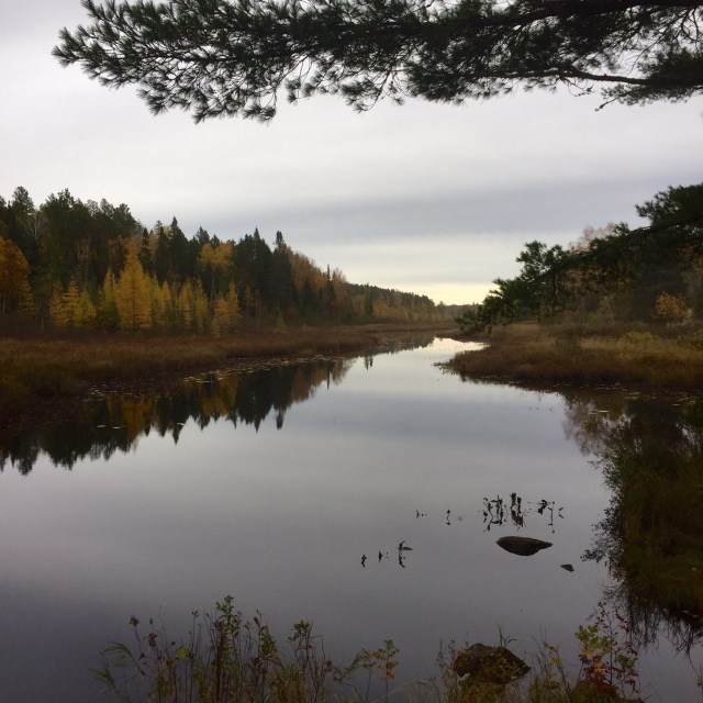 I had expected to be in the Superior National Forest (Boundary Waters) area tomorrow, but after getting to Voyageurs before lunch, I headed there today. Mercifully, the terrain changes a good deal as you move east — large granite formations appear and the forest goes from tiresome Aspen and Alder to larger conifer (though the Aspen remain). You also get more and more water — which helps create lovely vistas. Lakes and streams left from the glacial retreat hold beaver and waterfowl and give the ever present gray sky something to reflect, however dully, off. I loved Superior National Forest and would like to have stayed there. But today is opening day of something — juvenile deer season or moose season or something — and every two track I travelled ended with a couple of trucks. I’m happy about this. People getting out and around is a good thing. But when you are 20 miles from anything and you travel two miles down an unmarked road toward an un-named lake and find at the end a couple of trucks, and this happens over and over, you start to feel surrounded. So I kept pushing east, venturing off the dirt road on the two-tracks regularly, and ultimately, I ran out of forest and ended up in the community of Ely, MN. Which is lovely.