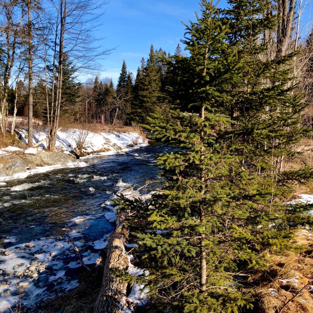 Cold and clear with very little wind was a great way to start the day on the edge in northern Vermont. Through Derby Line and Morgan Center, over to Wallace Pond, and finally to Canaan on the New Hampshire border. Technically I think I was east of the Green Mountain range, but there are several 3,000+ foot peaks in the northeast corner of the little club-shaped state of Vermont. It is a beautiful part of the edge with nothing more than some Canadian Flags on the storefronts and a few French language signs to give you any indication that you are anywhere other than America. The little towns are nice little towns, and the in between is a series of well framed vistas with lakes (all frozen), streams, and mountains joining the maple and birch forests in the composition.